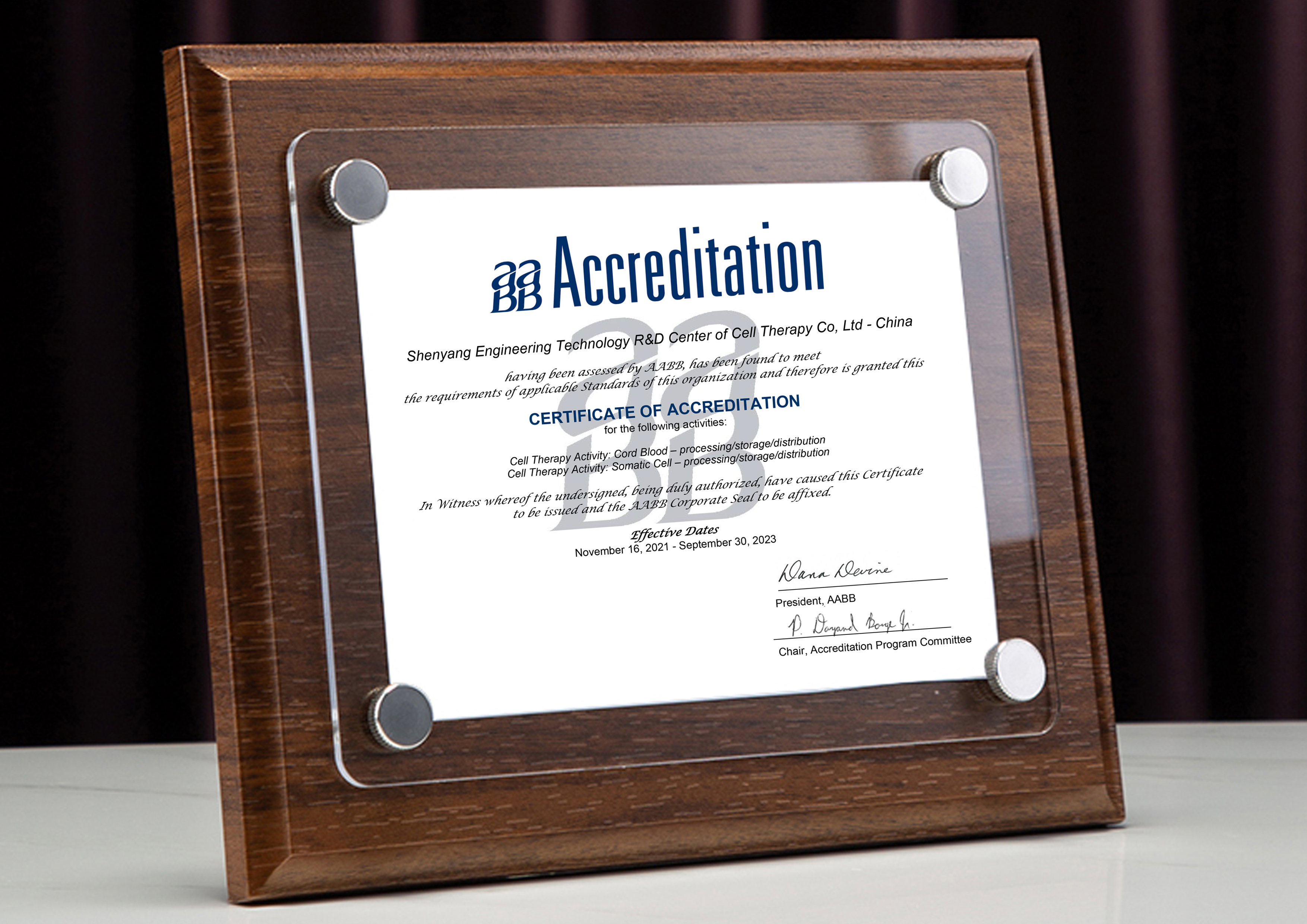 <上圖為沈陽(yáng)細(xì)胞中心獲得的AABB證書(shū)>