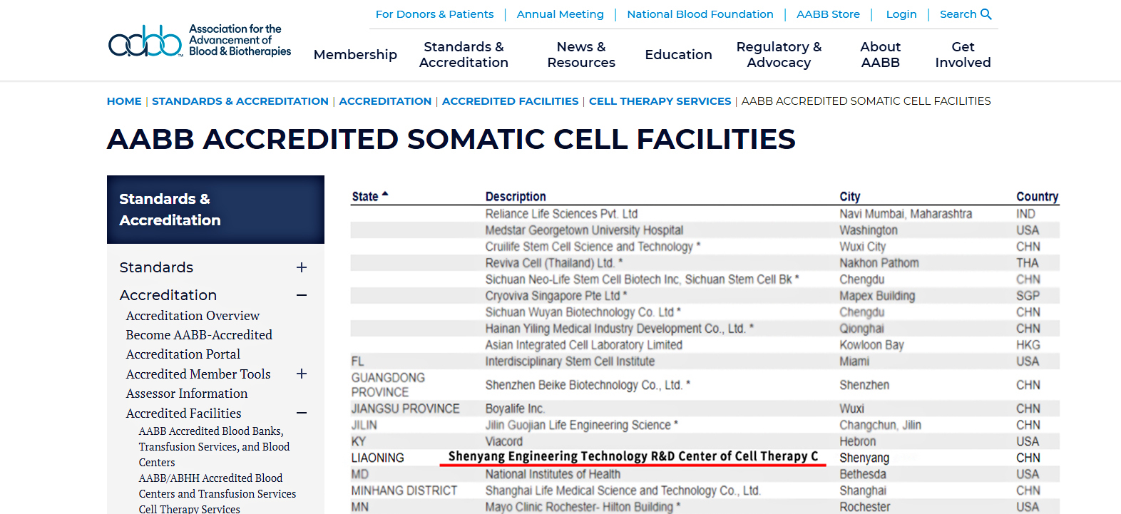 沈陽(yáng)細(xì)胞中心通過(guò)AABB雙認(rèn)證
